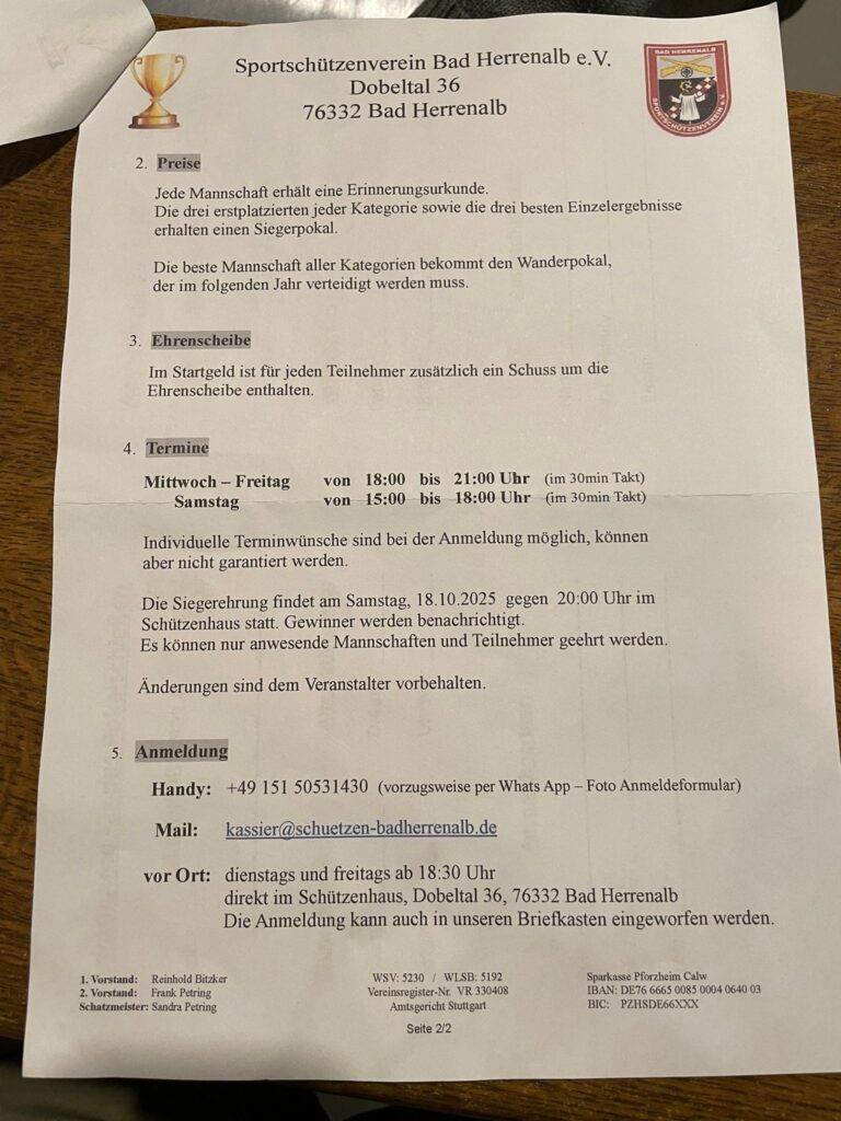 Pokalschießen 2025 im Schützenhaus Bad Herrenalb